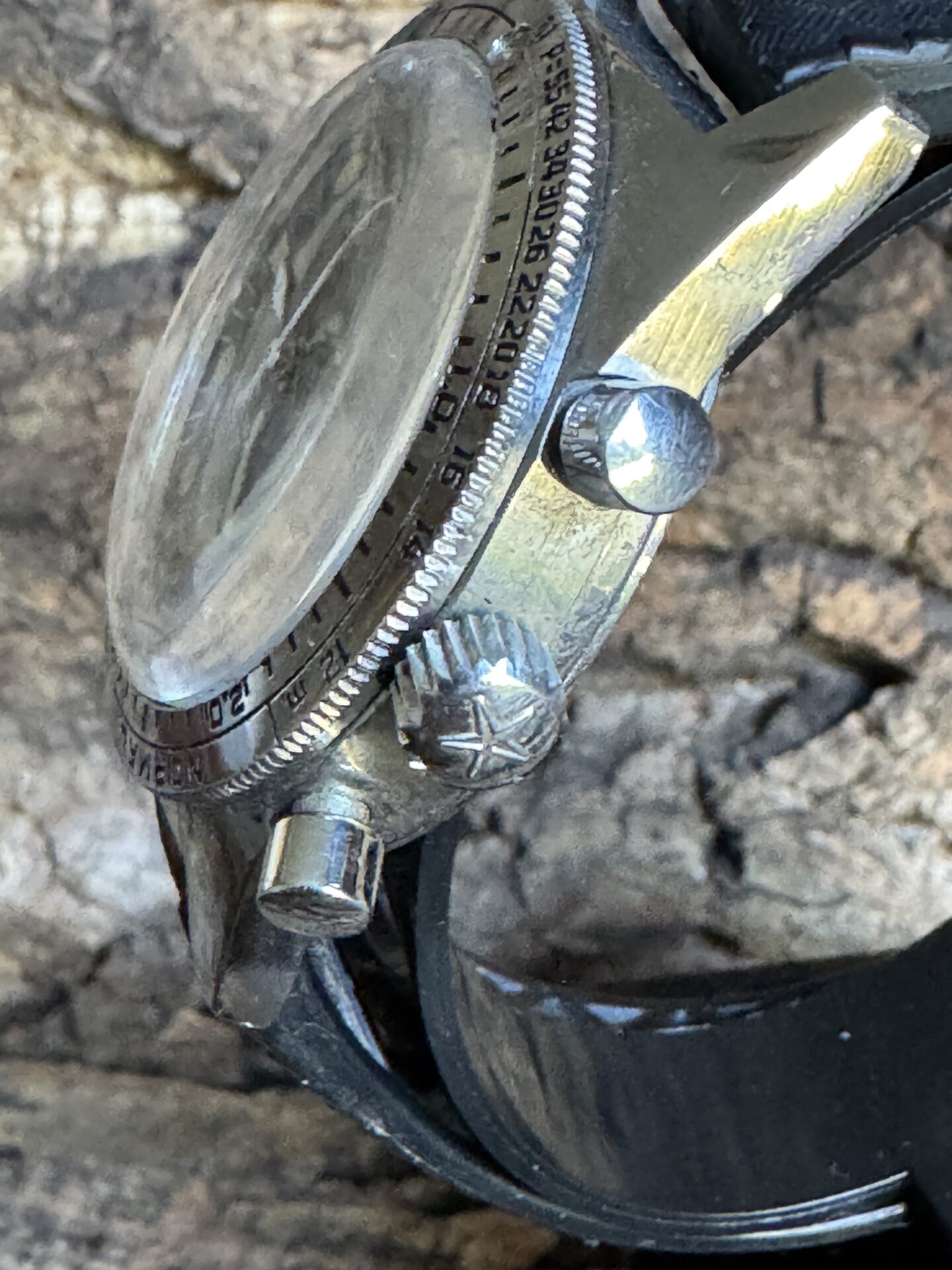 This chronograph is an icon among 1960s diving watches and belongs to the first series, which is the most sought-after. It is easily recognizable by the continuous seconds dial at 9 o’clock and its very rare movement on this model, a Valjoux 92 big dots caliber.