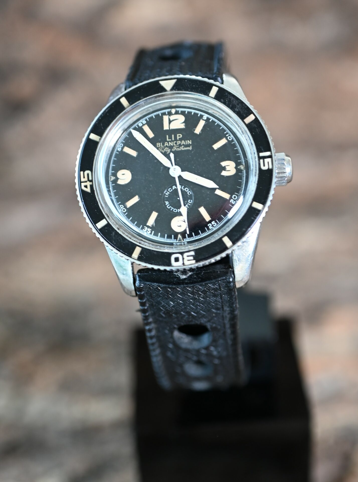 LIP¨fut choisi par BLANPAIN au début des années 1950 pour commercialiser en exclusivité ses modèles Fifty Fathoms. LIP tout puissant fort de sa place de numéro 1 des distributeurs en Europe imposera comme souvent à la marque de voir apparaitre son logo LIP sur les cadrans. Cette collaboration se terminera au début des années 60.