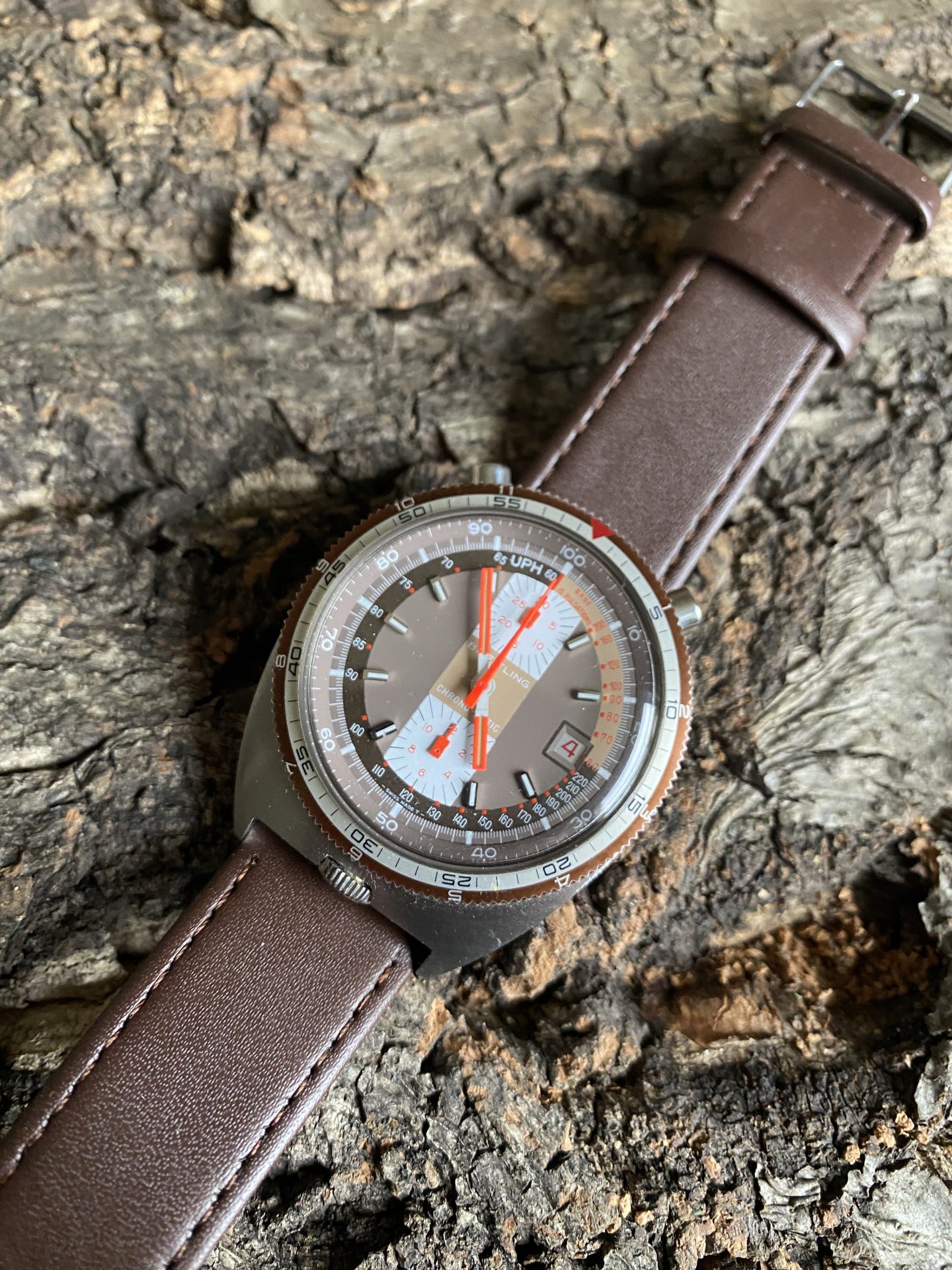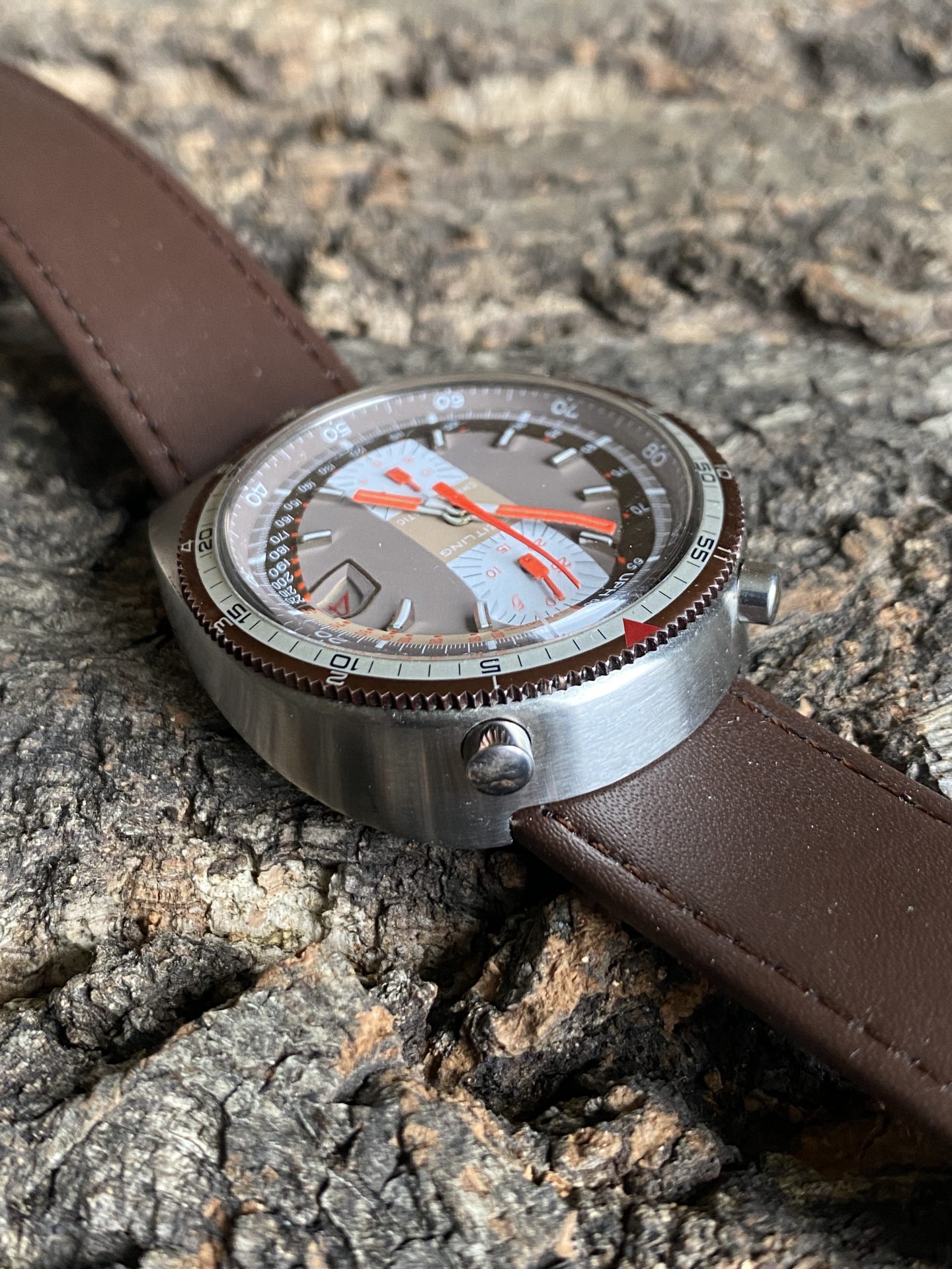 The watch offered here is completely authentic and not a rewinding as is very common on the « Bullhead ». It is in perfect aesthetic and working condition.