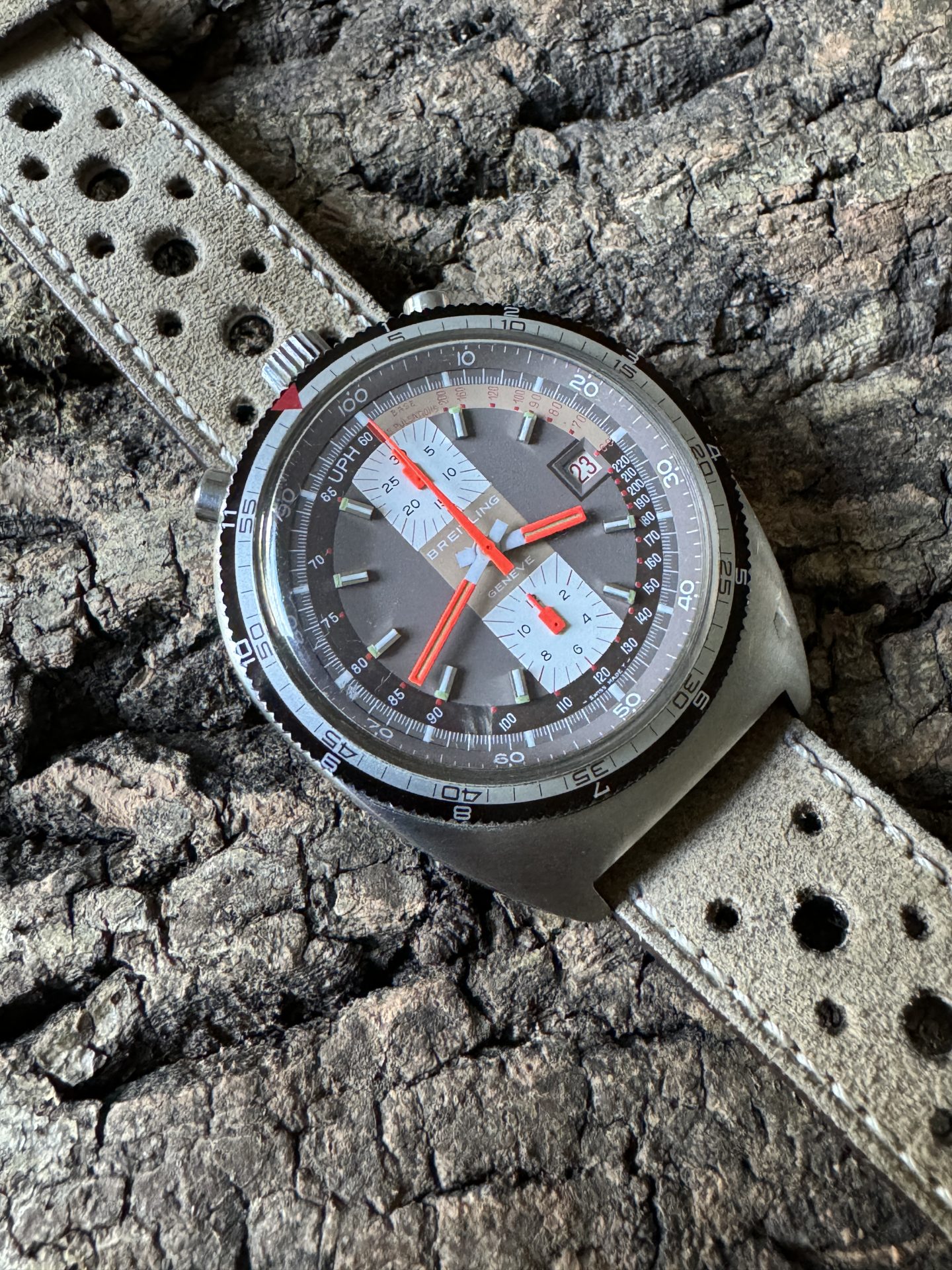 Very nice Breitling Bullhead Pupitre 7101 with its splendid maron glacé dial in perfect working order.