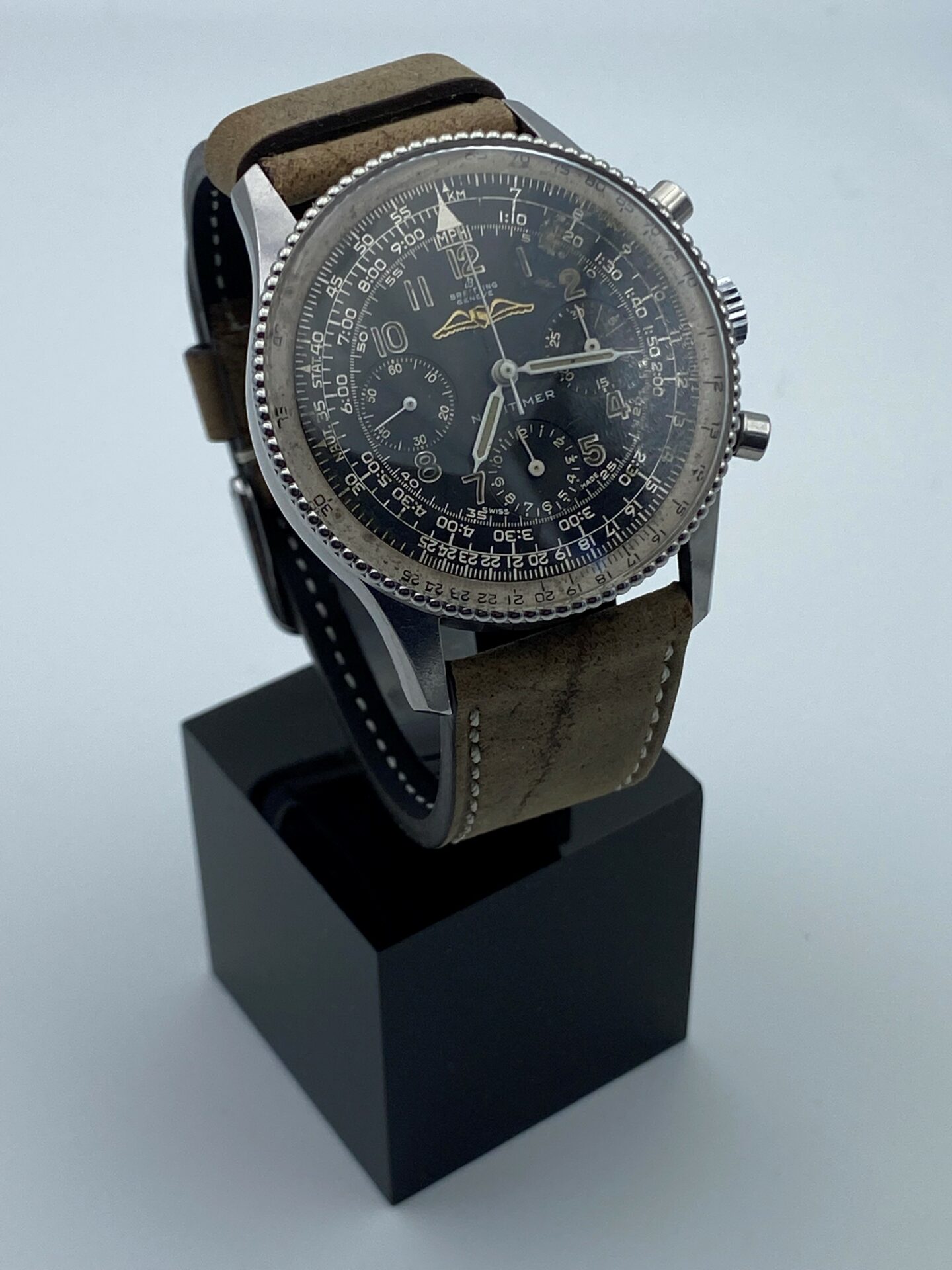 L’histoire de la Breitling Navitimer débute en 1952 à la demande de l’«Aircraft Owners and Pilots Association» (AOPA) le puissant syndicat des Pilotes Américains qui en fait sa montre officielle. Elle devient le chronographe le plus emblématique de la marque, en raison de sa règle à calcul intégrée, qui permettait aux pilotes d’effectuer des calculs inédits, notamment en ce qui concerne la vitesse moyenne, la distance parcourue, la consommation de carburant et la vitesse ascensionnelle. La star des collections reste la fameuse référence 806, équipée d’un mouvement Venus 178 comme le modèle présenté ici qui est une véritable icône pour tout collectionneur de chrono d’aviation et dont le design est reconnaissable entre tous.