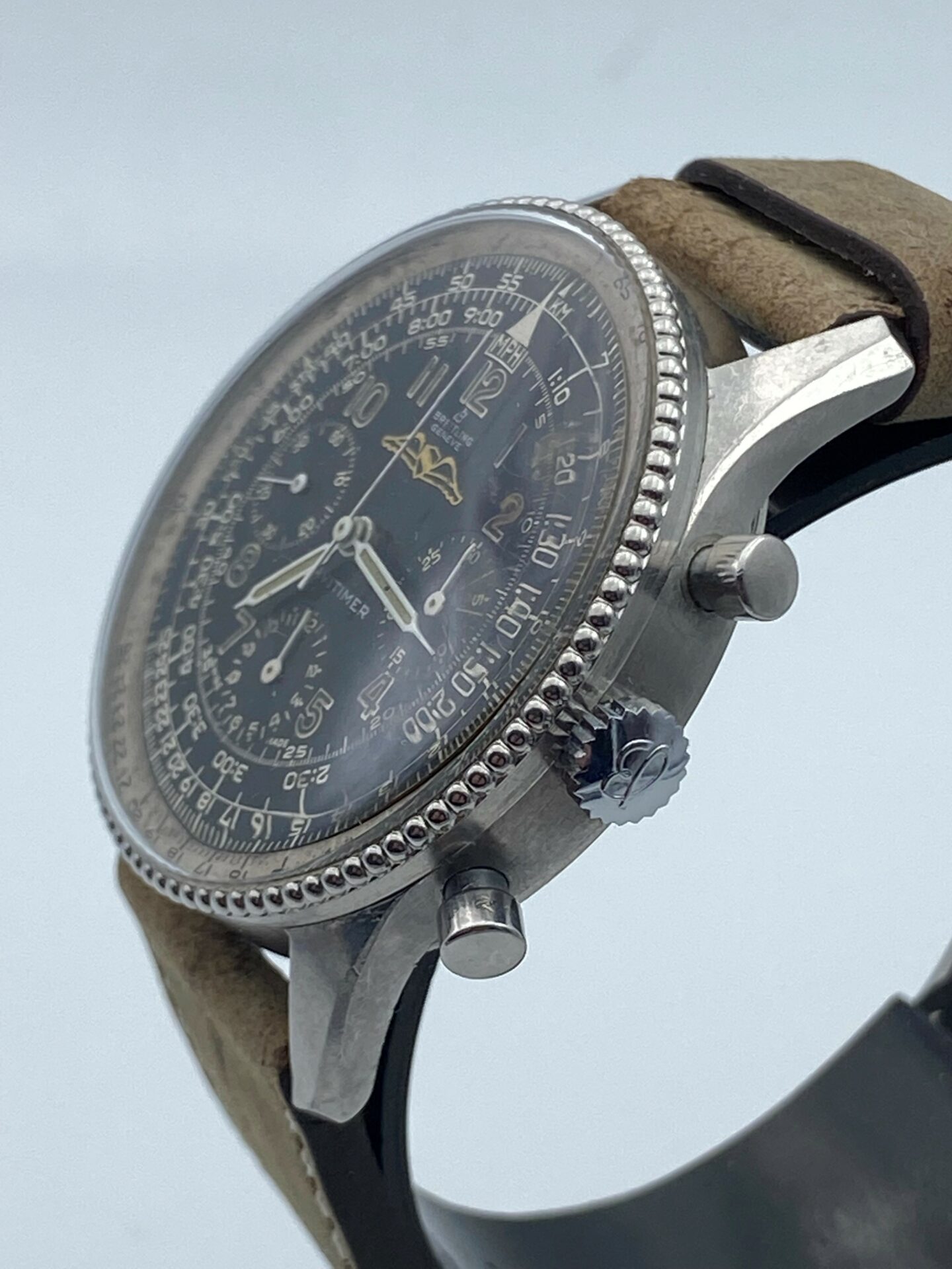 Donc si vous recherchez un NAVITIMER cadran panda avec sa fameuse lunette perlée résolument Vintage, c’est ce très beau NAVITIMER qu’il vous faut. A noter l’excellent état de cette montre et de son cadran ainsi que de sa règle à calcul blanche intérieur tournante.