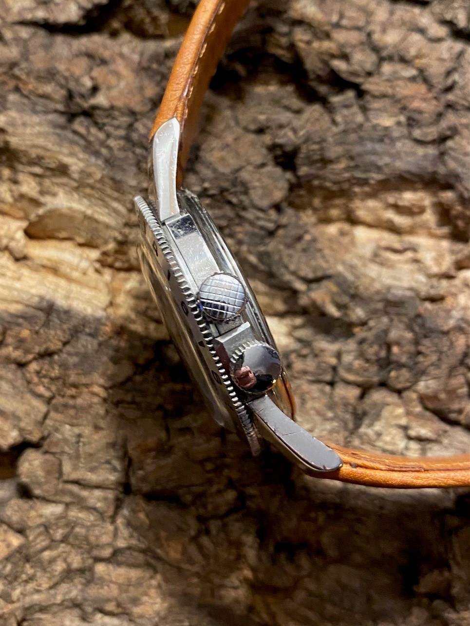 The model presented is in very good cosmetic condition. The stop second thread at 12 o’clock is in place and performing its function, which is very rare on this model. The only drawback is that the bezel unlocking crown, which performs this function very well, should not be unscrewed completely as it has no stop.