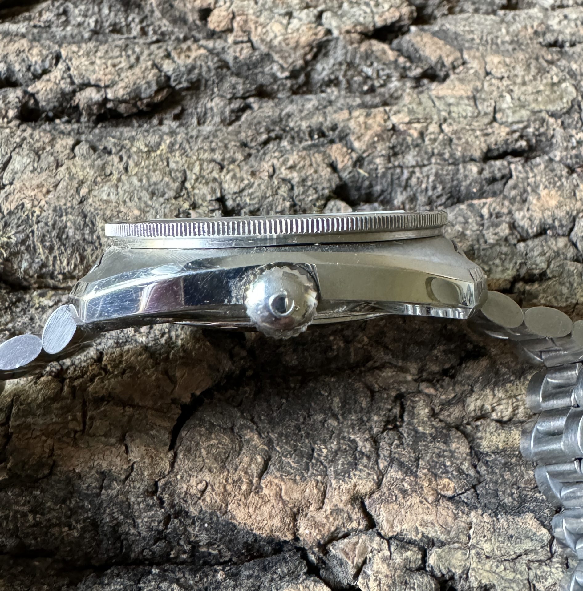 Omega Vintage Seamaster 200 Ref.166.068 Nickname: ‘Banana’. With its very rare original link bracelet and Omega clasp.