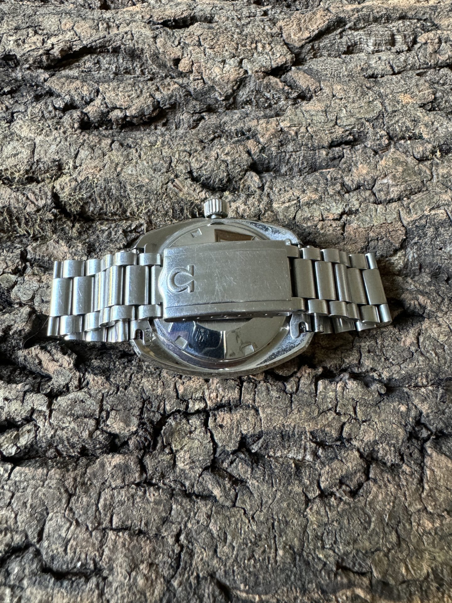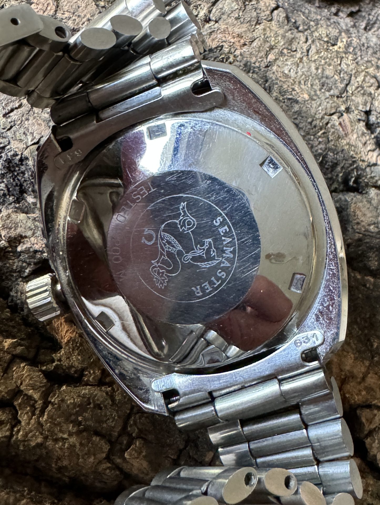 Omega Vintage Seamaster 200 Ref.166.068 Surnom : « Banana ». Avec son très rare bracelet à maillons d’origine et fermoir Omega.