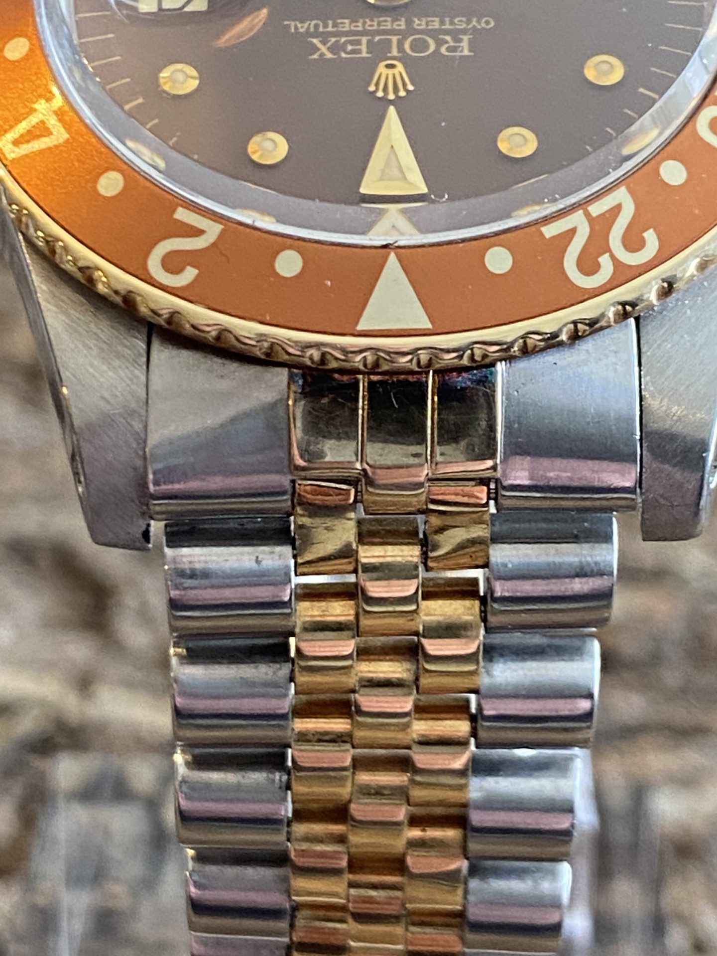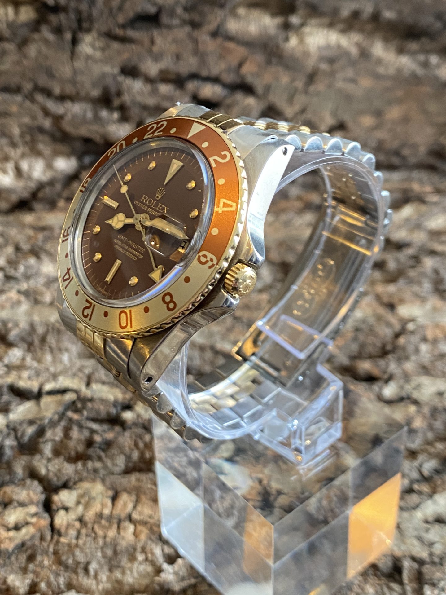 Rolex ref. 1675/3 GMT-Master gold & steel watch called « Root Beer », also known as Clint Eastwood.