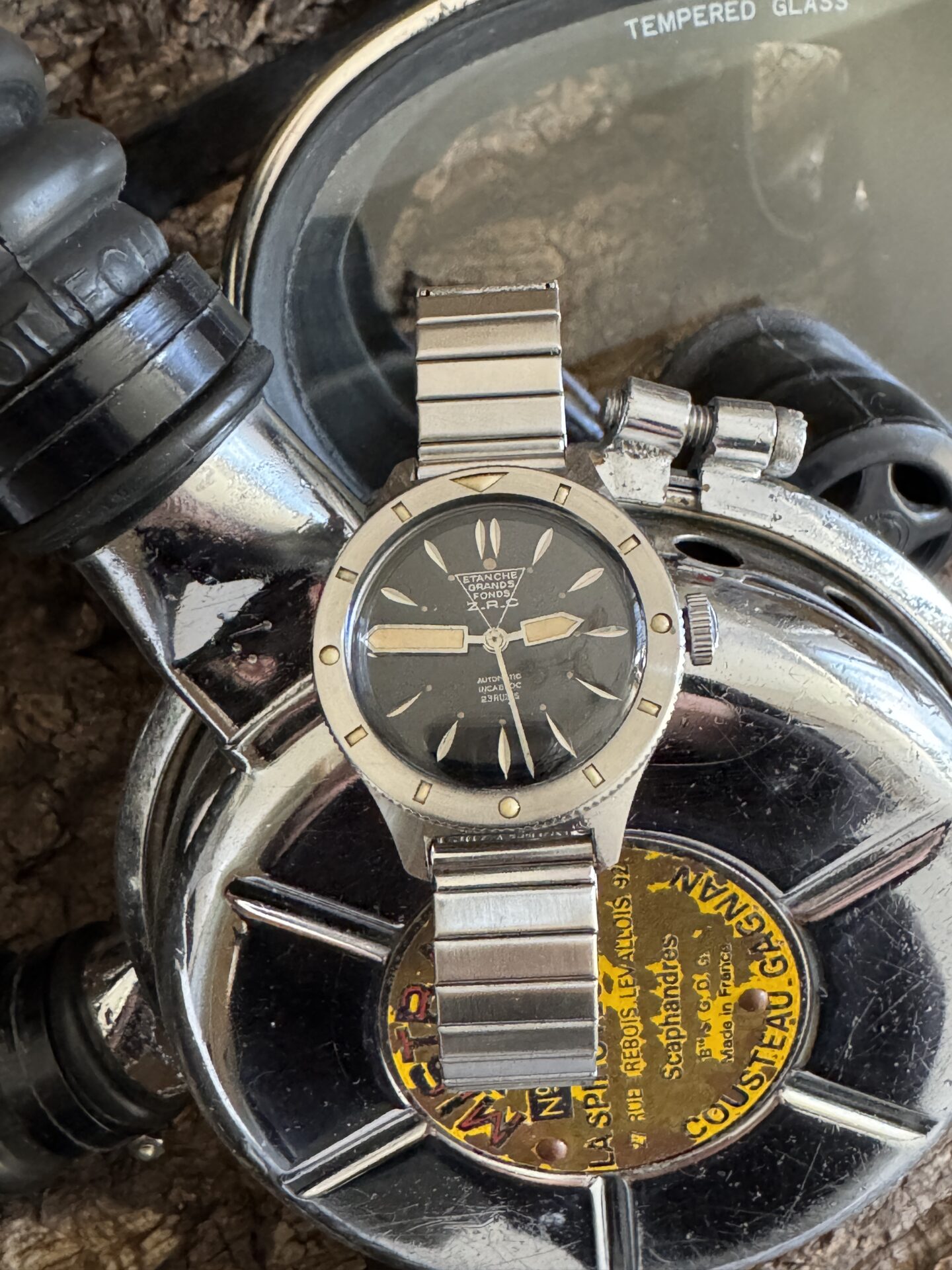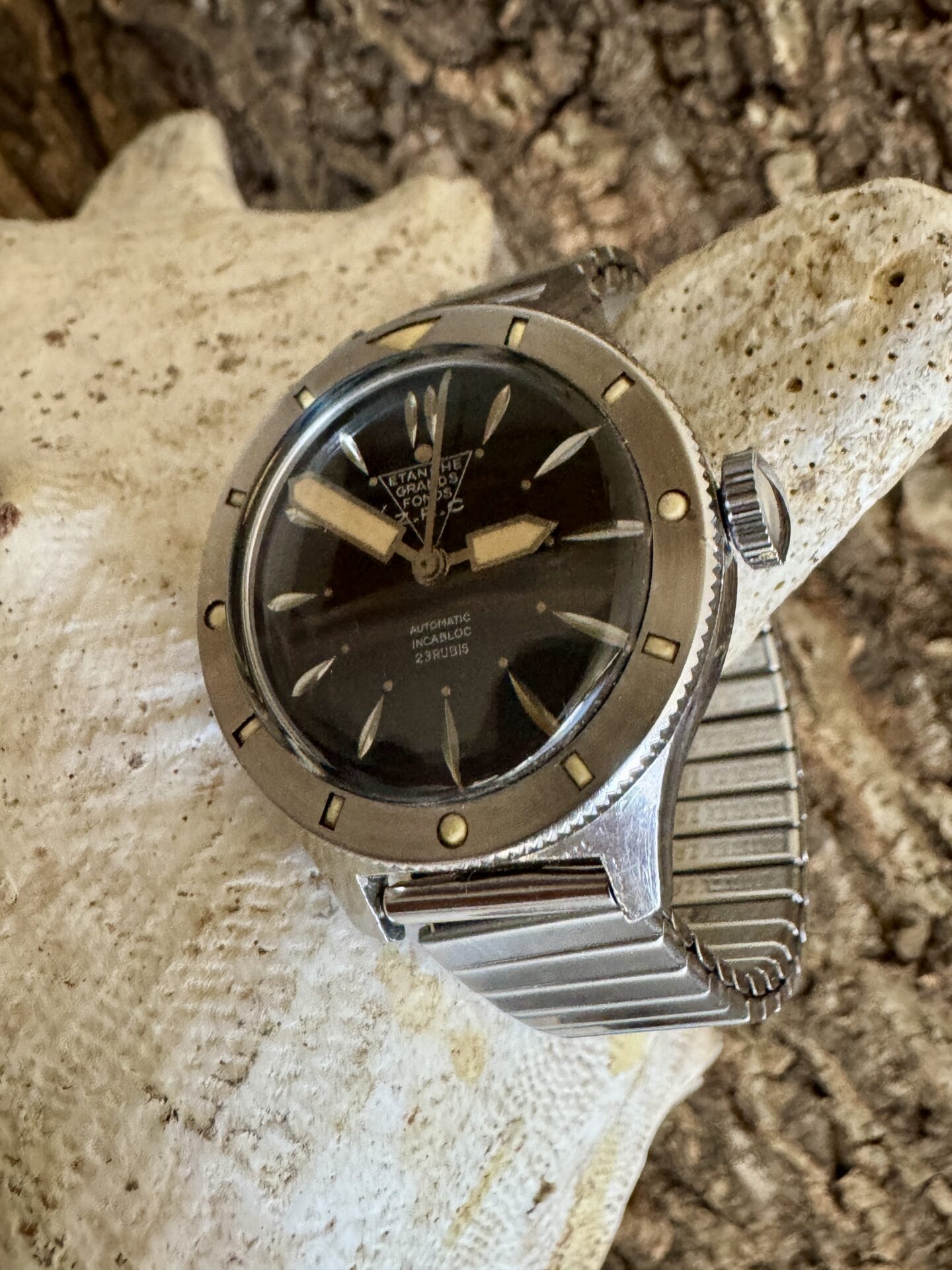 It is mounted on its original SIZOFLEX ZRC bracelet, which had the advantage of fitting easily over diving suits. Its elasticity has been redone.